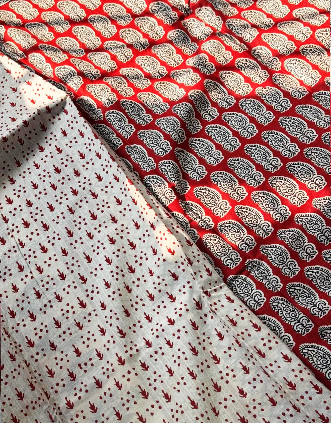 Each pattern is manually stamped using age-old hand block printing techniques, ensuring authenticity, clarity, and artisan excellence. No two pieces are identical—each saree carries the subtle variations of handcrafted beauty.