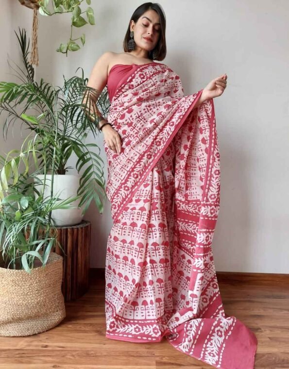 Pure Mulmul Cotton Saree – Lightweight, breathable, and beautifully hand block printed. Perfect for everyday elegance and special occasions.
