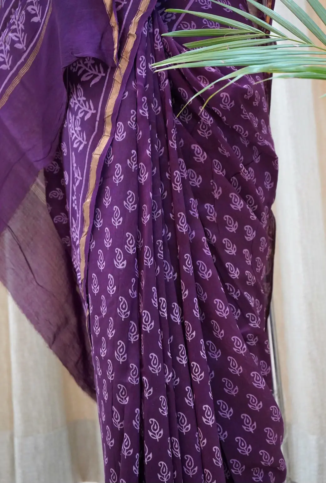 Lightweight and breathable, this saree ensures all-day comfort without compromising on elegance. Every motif is hand-stamped by skilled artisans, ensuring authenticity, uniqueness, and sustainability.