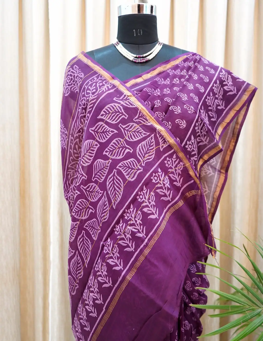 1 review for Purple Chanderi Silk Saree – Hand Block Printed with Leaf & Floral Motifs
