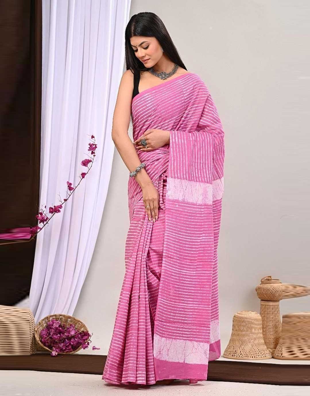 - Hand block printed saree online