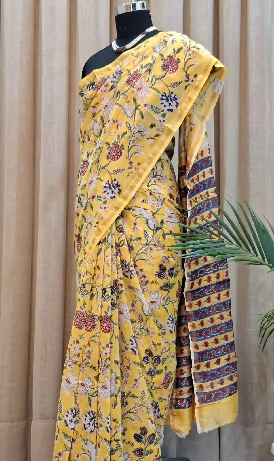1 review for Yellow Chanderi Silk Saree – Hand Block Printed with Floral Motifs